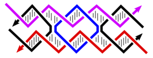 We map abstract molecular reactions to DNA reactions. Through a process called DNA strand displacement, single strands of DNA displace parts of double strands, releasing other single strands.
