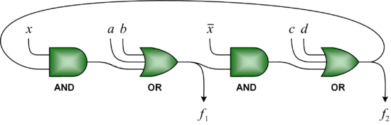 A circuit that has feedback and yet is combinational.